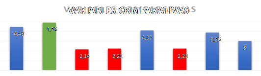 La Figura 6, identifica las variables del instrumento OPS que tienen similitud a las categorías analizadas por Carrillo (2018), y que permite visualizar un considerable incremento en la valoración de “Dirección (D)”, mientras que “Retribución (RET)” presenta una notoria caída en la puntuación junto con la variable que corresponde a “Estabilidad” y “Sentido de Pertenencia (RES)”.