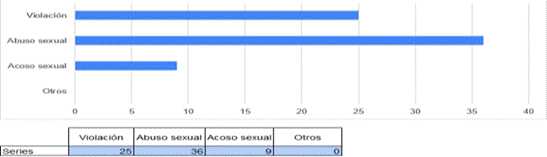 Dentro de los delitos de integridad sexual y reproductivo, los más vulnerados durante el confinamiento, son acoso sexual, abuso sexual y violación; El acoso sexual se produce cuando una persona se aprovecha de una relación laboral, docente o de prestación de servicios para solicitar favores sexuales a otra que está en el mismo ámbito, causando en la víctima una situación objetiva y gravemente hostil, humillante e intimidatoria. (Vidal, 2021).