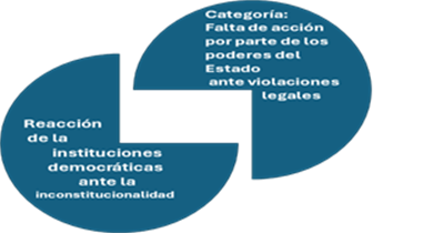 En concordancia con la figura 4, al preguntar sobre la reacción de las instituciones democráticas ante la inconstitucionalidad o ilegalidad de normas o actos de gobierno, se destaca la falta de acción por parte de los poderes del Estado frente a las violaciones legales. A pesar de que las instituciones deberían actuar conforme a la ley para garantizar el Estado constitucional de derechos, en la actualidad es muy evidente que no se da. Además, la concentración de poder limita la capacidad de las instituciones democráticas para garantizar el respeto a la ley. Considerando este criterio, surge la siguiente categoría: falta de acción por parte de los poderes del Estado ante violaciones legales.