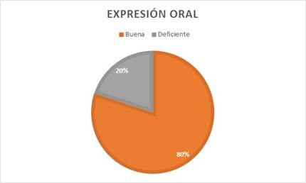 De acuerdo con la figura 1, 80% de los estudiantes mostraron una óptima expresión oral mediante el uso del pictograma en el Book Creator, debido a que llevaron a cabo exposiciones donde presentaron sus producciones digitales y lo compartieron con el docente y sus compañeros de clase.