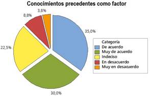 Figura 3. Factores conocimientos precedentes y adecuación actividades. Fuente: Encuesta. |