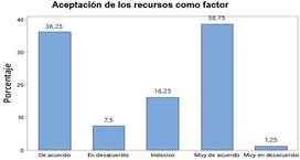 Figura 4. Factores aceptación de los recursos y satisfacción de familiares. Fuente: Encuesta. |
