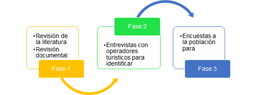 Para encontrar los lugares que tengan potencialidades de turismo de aventura en Loja se lleva a cabo la investigación en tres fases, especialmente para la recolección de la información. Lo mencionado se describe a continuación: