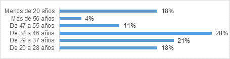 La información recopilada con la aplicación de las encuestas dirigidas a turistas de aventura, dentro de las características demográficas se advierte que el segmento potencial involucra a personas de preferencia de sexo masculino (54%) con un rango etario entre 38-46 años (28%) y de 29-37 años (21%) que implica un segmento poblacional joven.