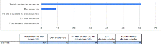 Con los resultados obtenidos en la primera pregunta según la figura 1, se determina que vulneraron derechos a la integridad sexual, por cuanto de 70 abogados encuestados, un 87.14% totalmente de acuerdo que, si existió, esta es la razón por la cual se evidencia la necesidad de investigar respecto a los delitos de integridad sexual. De igual forma esta premisa sobre la importancia de proteger, promover medidas para evitar la vulneración a la libertad y voluntad sexual.